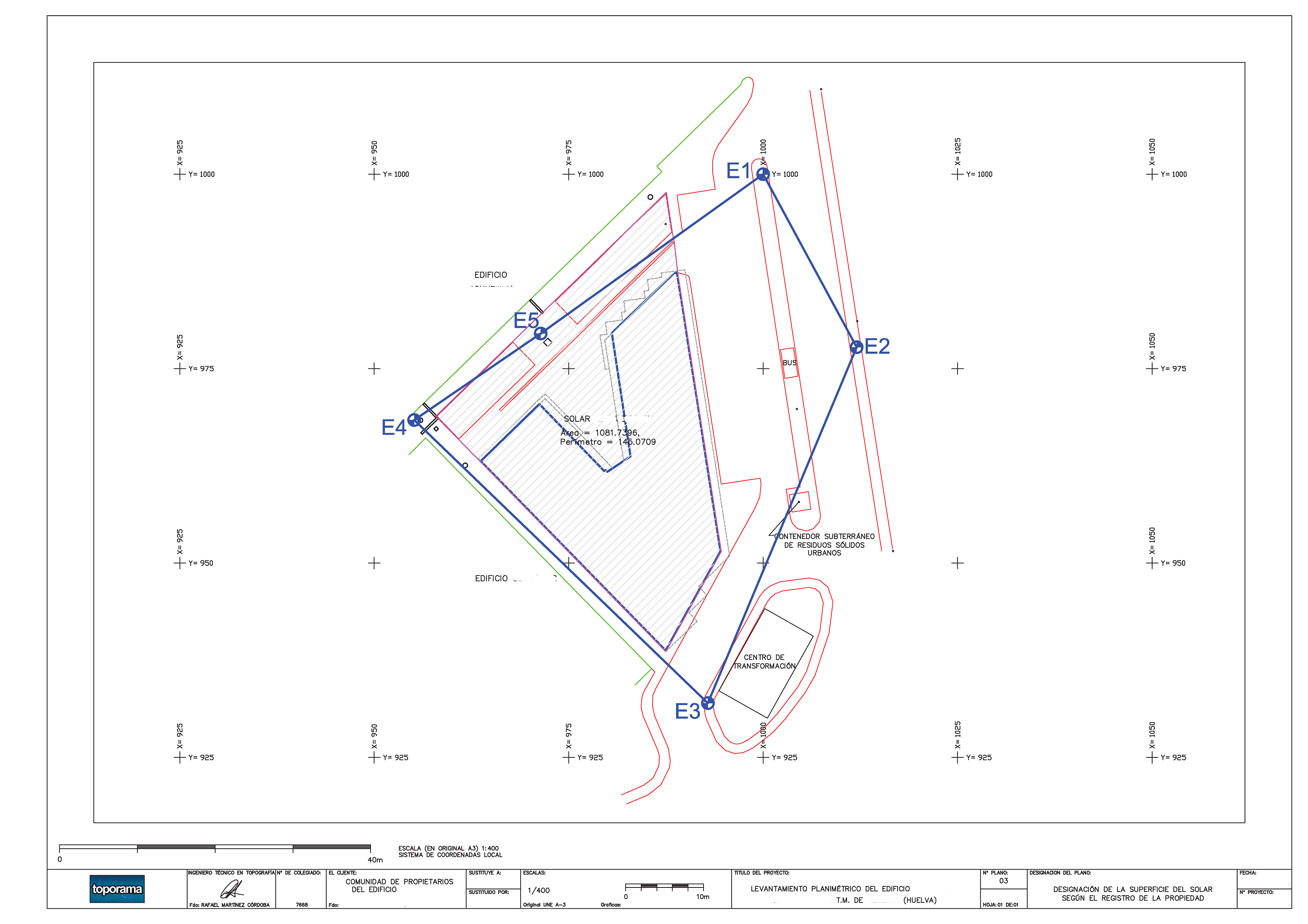 El objeto del trabajo es el estudio del solar de la finca matriz de un edificio, mediante investigación a partir de la Certificación del Registro de la Propiedad, Certificación Catastral y Medición Topográfica Planimétrica.